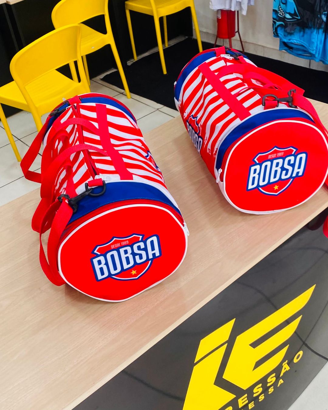 Leve o seu time ou a sua empresa para outro nível com a nossa Bolsa Esportiva Redonda! Desenvolvida para quem não abre mão de resistência, espaço e estilo, ela é o acessório perfeito para combinar com o seu uniforme e carregar tudo o que você precisa para o treino ou para a rotina.