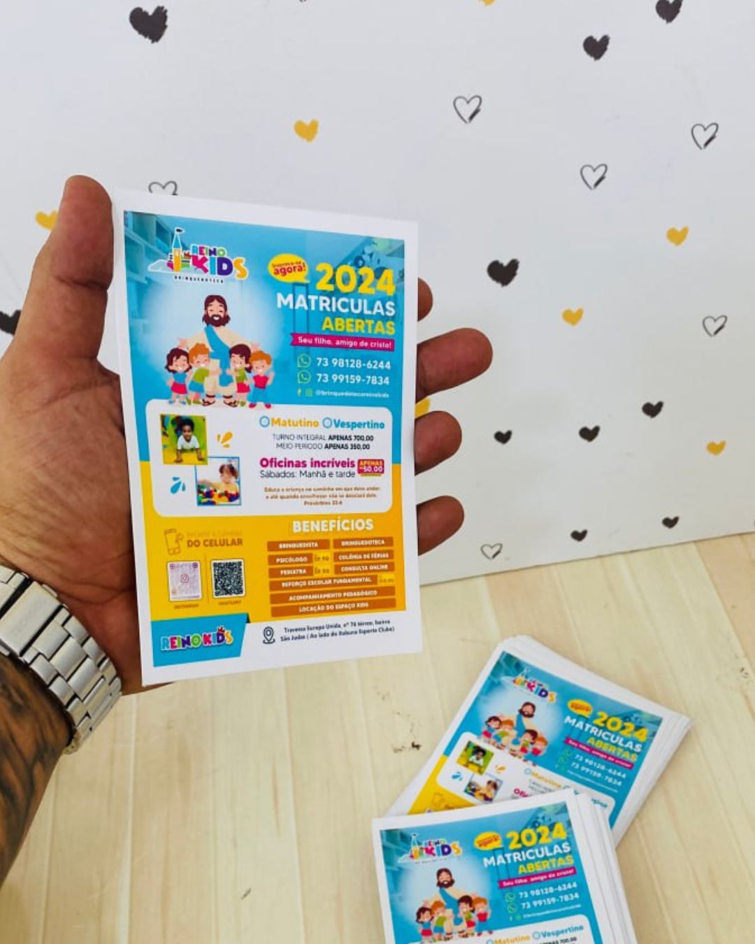 Arte Grátis: Nós montamos a arte para você! Basta enviar sua logomarca e as informações que deseja incluir.